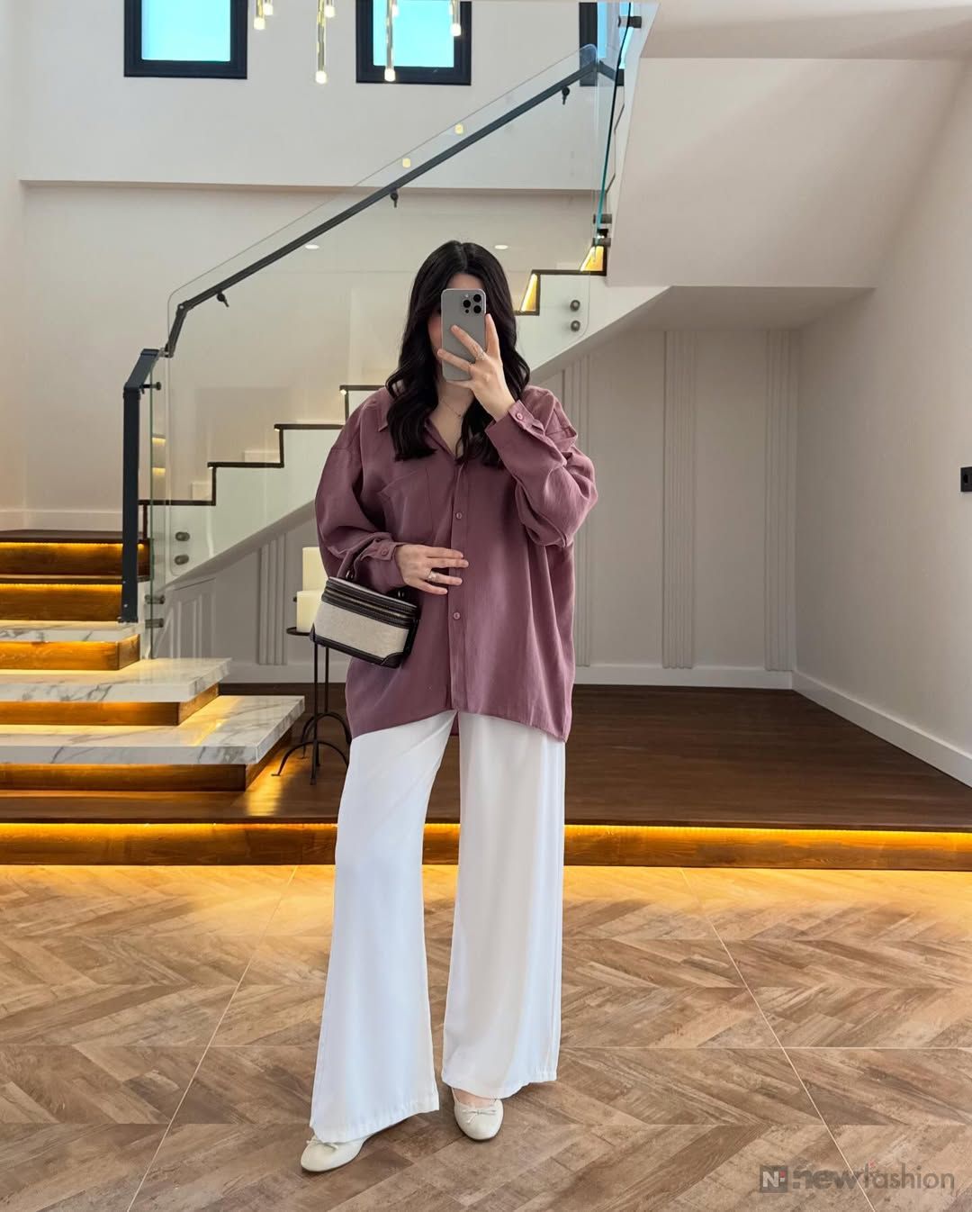 أما السروال، بتصميمه المنسدل والرحّب، فيرسم خطوطاً انسيابية تُطيل قوامكِ بأناقة ملكية، ويوفر أقصى درجات الراحة دون التنازل عن الأبهة. هو ليس مجرد قطعة ملابس، بل هو امتداد لشخصيتكِ المتفردة، يتيح لكِ الحركة بسلاسة وثقة، سواء كنتِ تترأسين اجتماعاً مهماً أو تتألقين في أمسية خاصة. 🕊️
