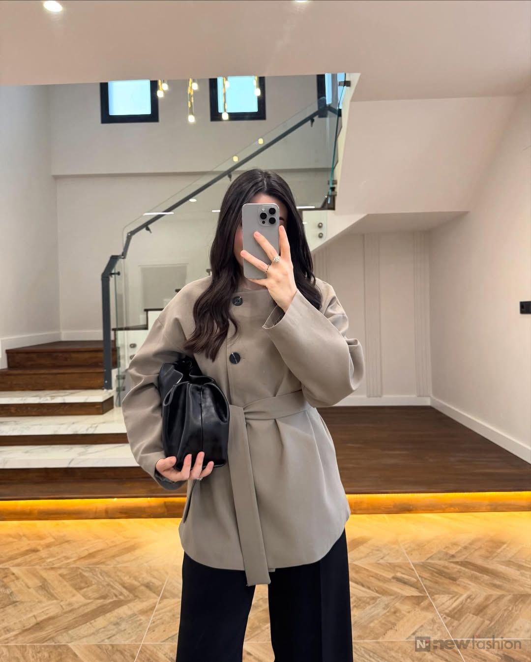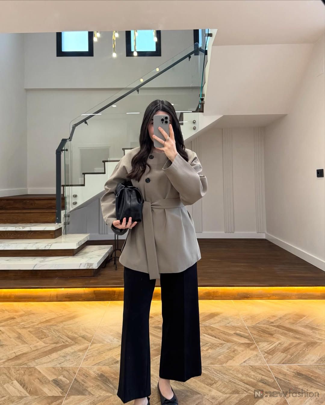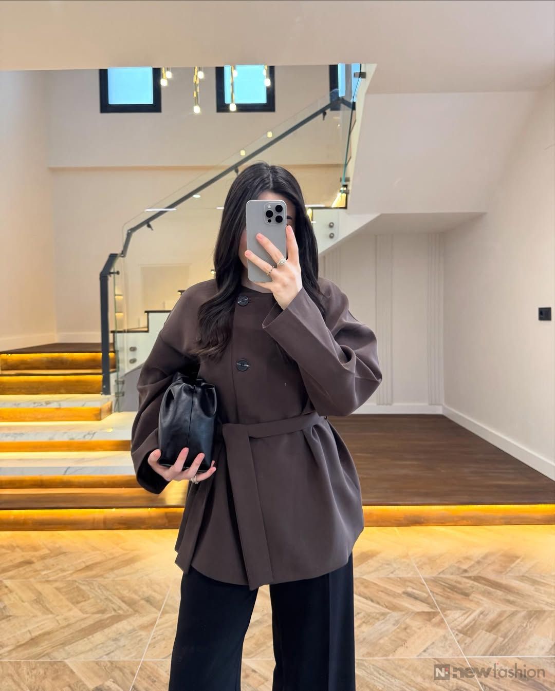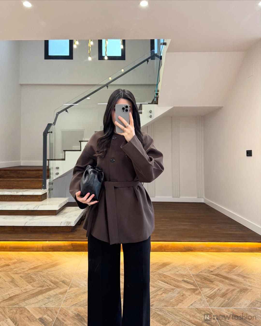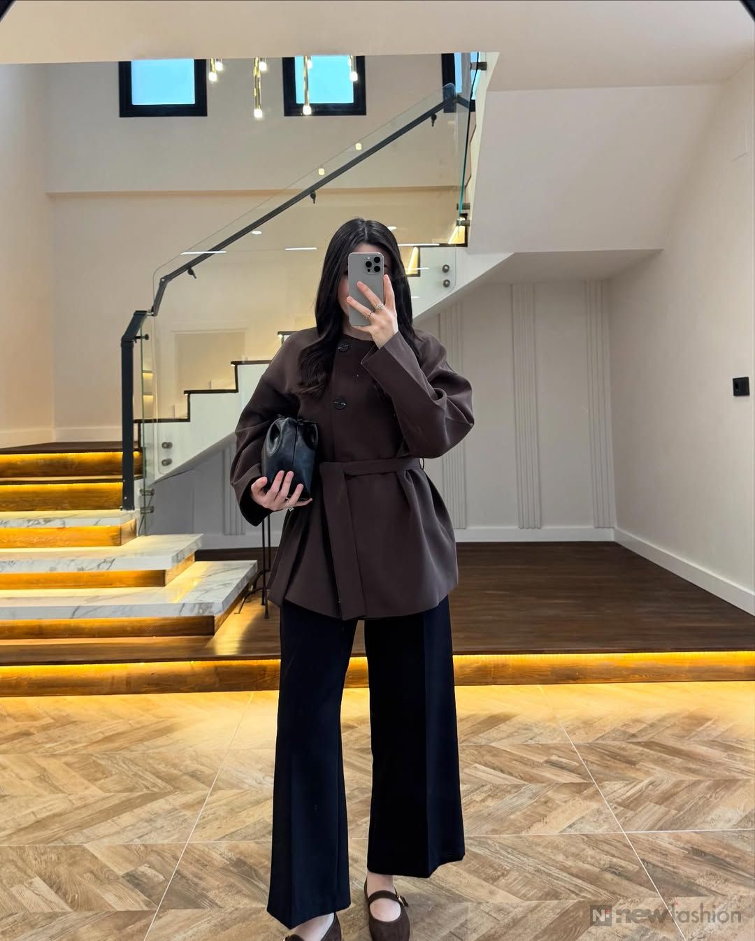 ✨ القطعة الفوقانية: راه ماشي غير قميجة وصافي! هادي بياسة تجمع ليك الأناقة الكلاسيكية القديمة مع اللمسة العصرية ديال دابا 🧥. الكول ديالها واقف وكيعطي واحد الهيبة اللي تْحمر الوجه، والحزام اللي كيجي معاها كيحدد الوسط ديالك بذكاء باش تباني أكثر أنوثة وجاذبية. شي حاجة واااااعرة! 🔥